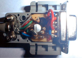 PC側DSUB9ピンのメスコネクタ部のカバーの中に上記の回路を実装した基盤を格納する。