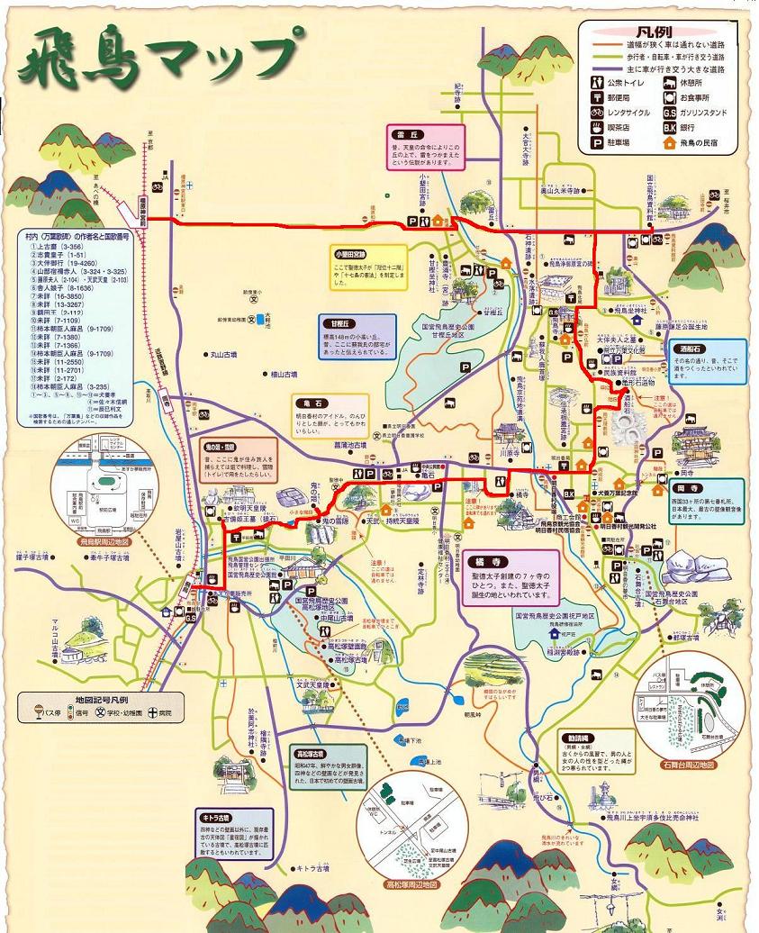 =>聖徳太子誕生の地(橘寺)=>酒船石遺跡、亀形石=> 飛鳥寺、入鹿首塚=>国立飛鳥資料館=>橿原神宮駅