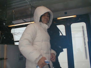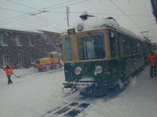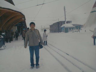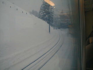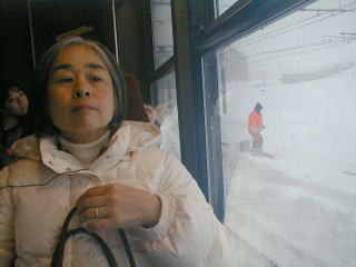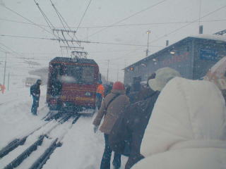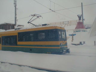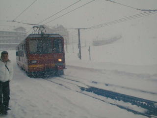 A登山電車に乗車 あいにく吹雪
