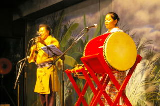 島唄の生演奏を聴きながら、食事
